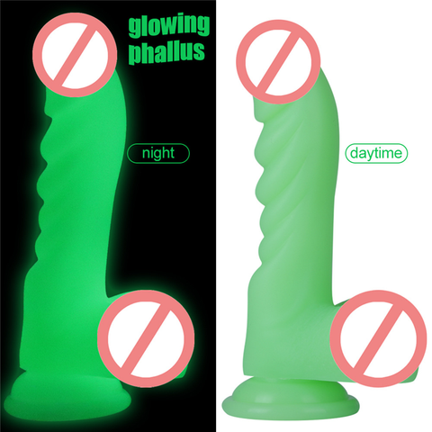 Bagliore nel buio luminoso Super morbido Dildo con forte aspirazione Base femminile dispositivo di masturbazione
